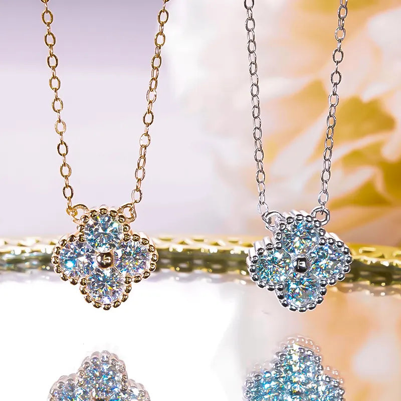 HeavenLea Clover Shine Moissanite Necklace - A Symbol of Everlasting Love and Elegance