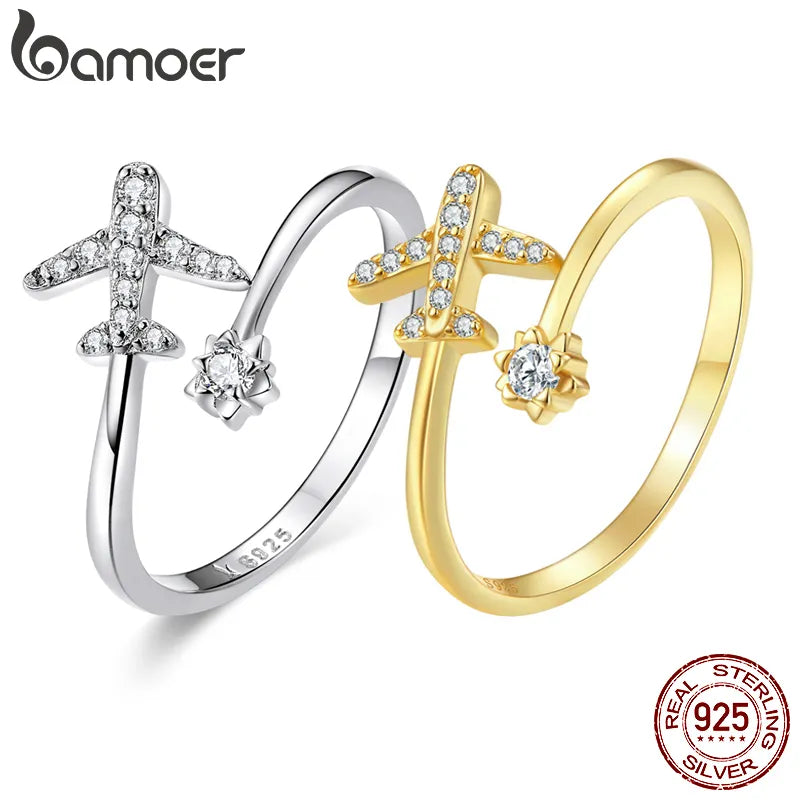 Jet Set Sterling Silver CZ Adjustable Ring - Explore Your Dreams